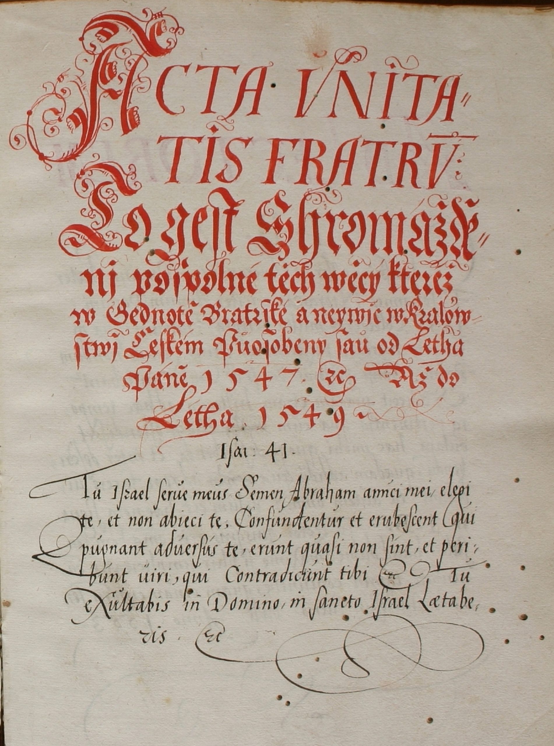 Akta jednoty bratrské – Acta Unitatis Fratrum; titul souboru zapsaný ve svazku AUF VII, fol. Ib-IIa.