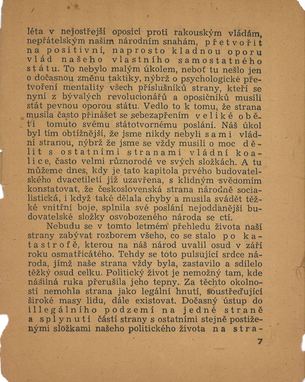 Fotografie ze sjezdu zastupitelstva ČSNS v Obecním domě v Praze, na kterém byl přijat akční program strany.