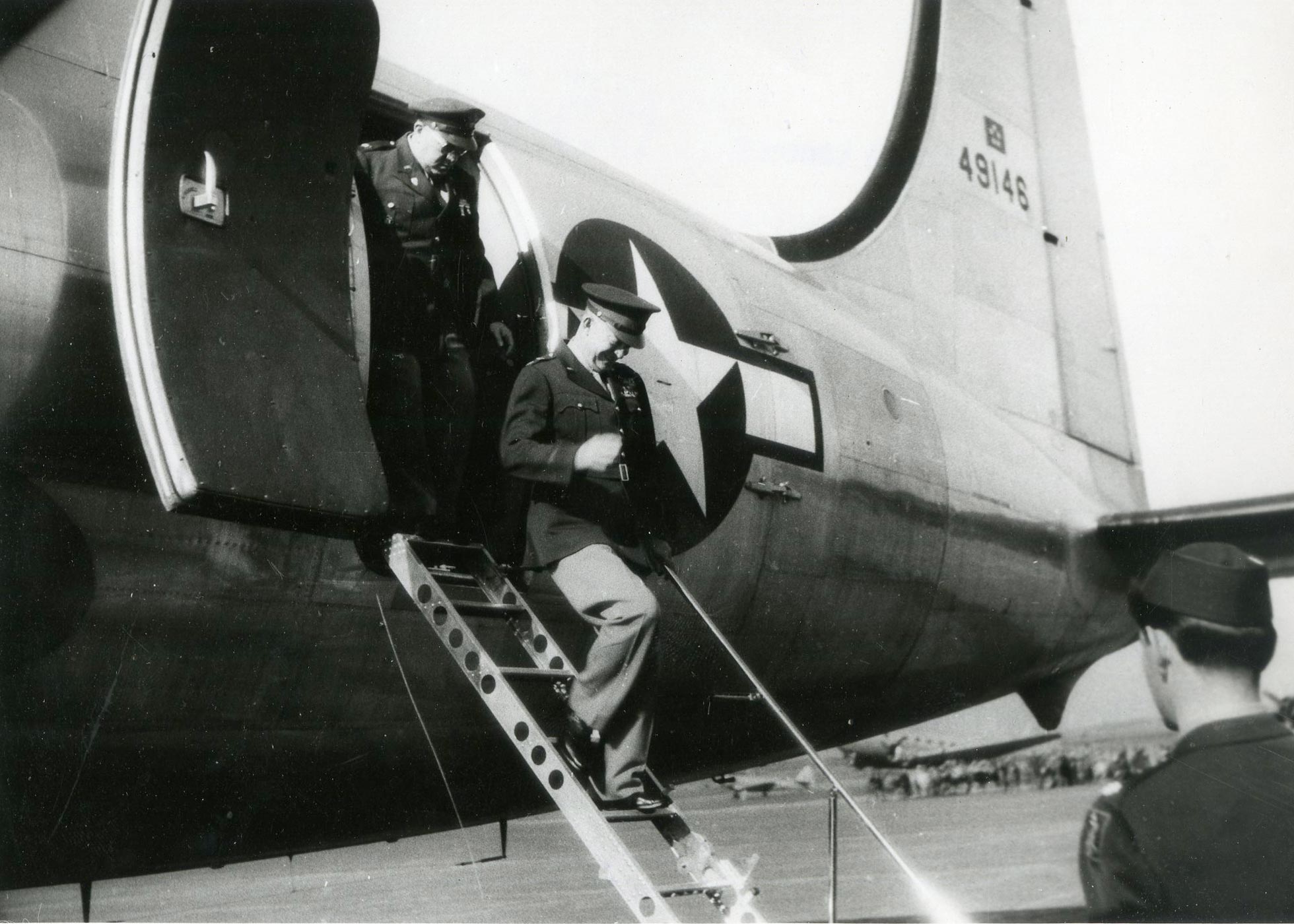 Reportáž z příletu generála Eisenhowera do Prahy.