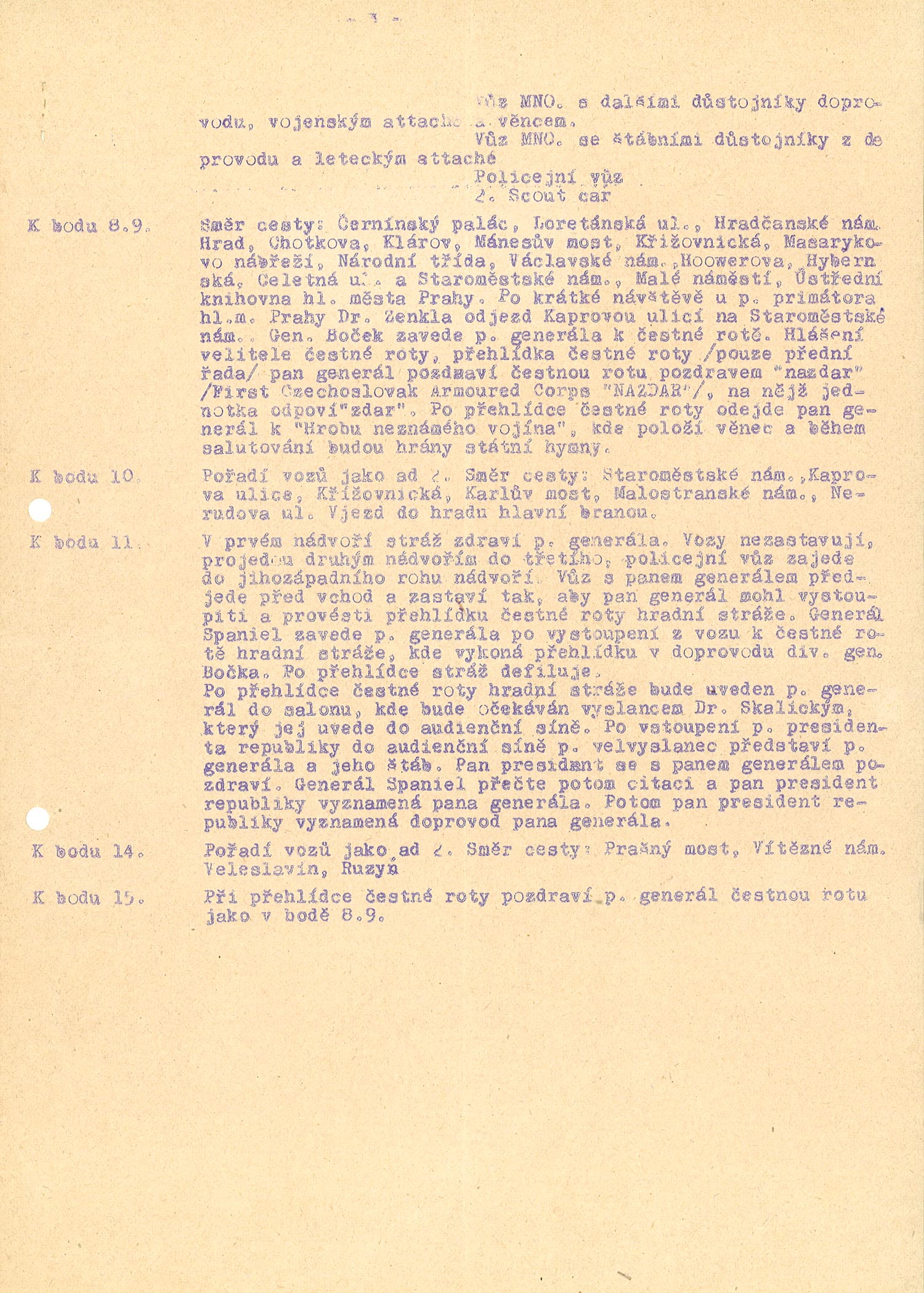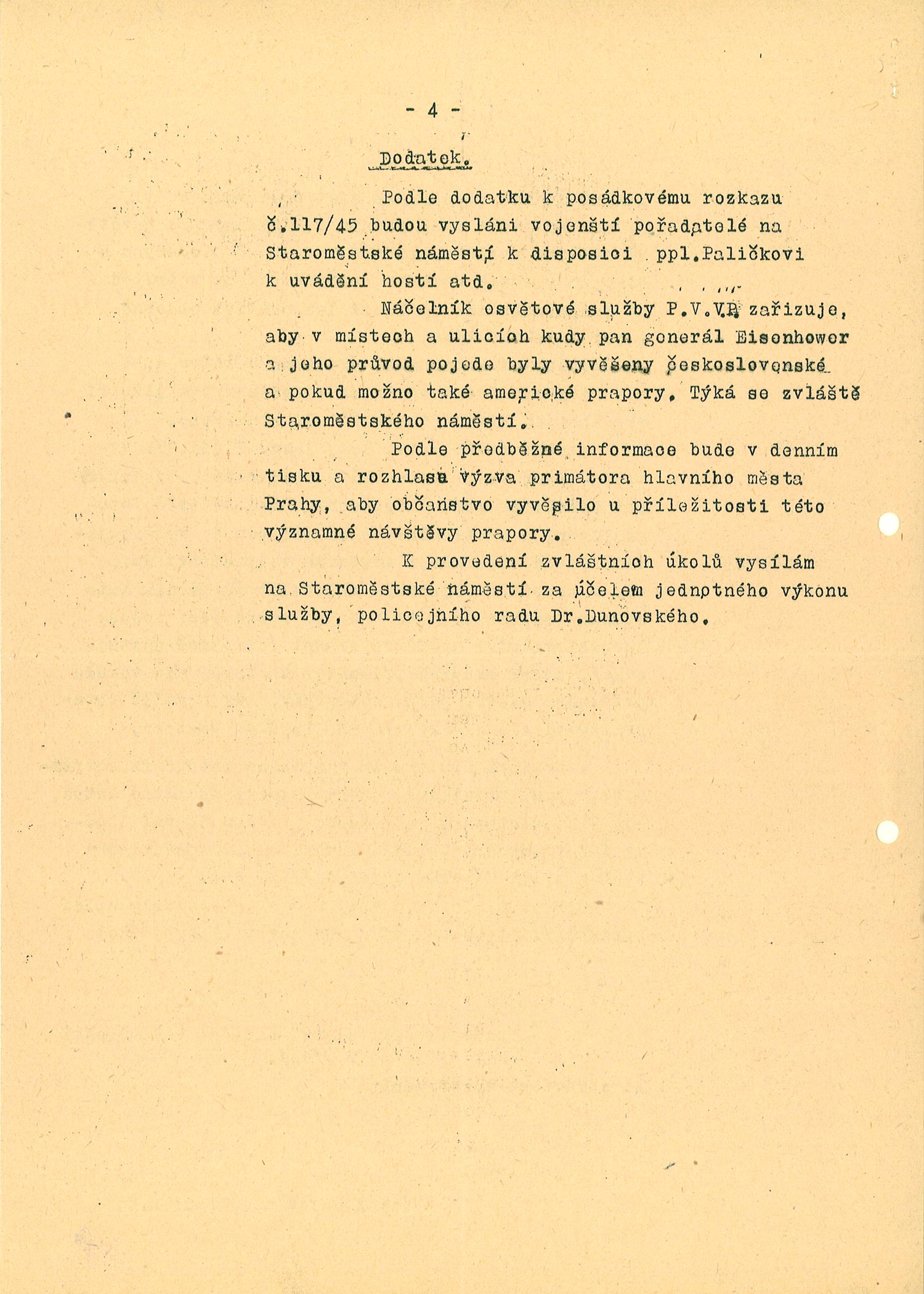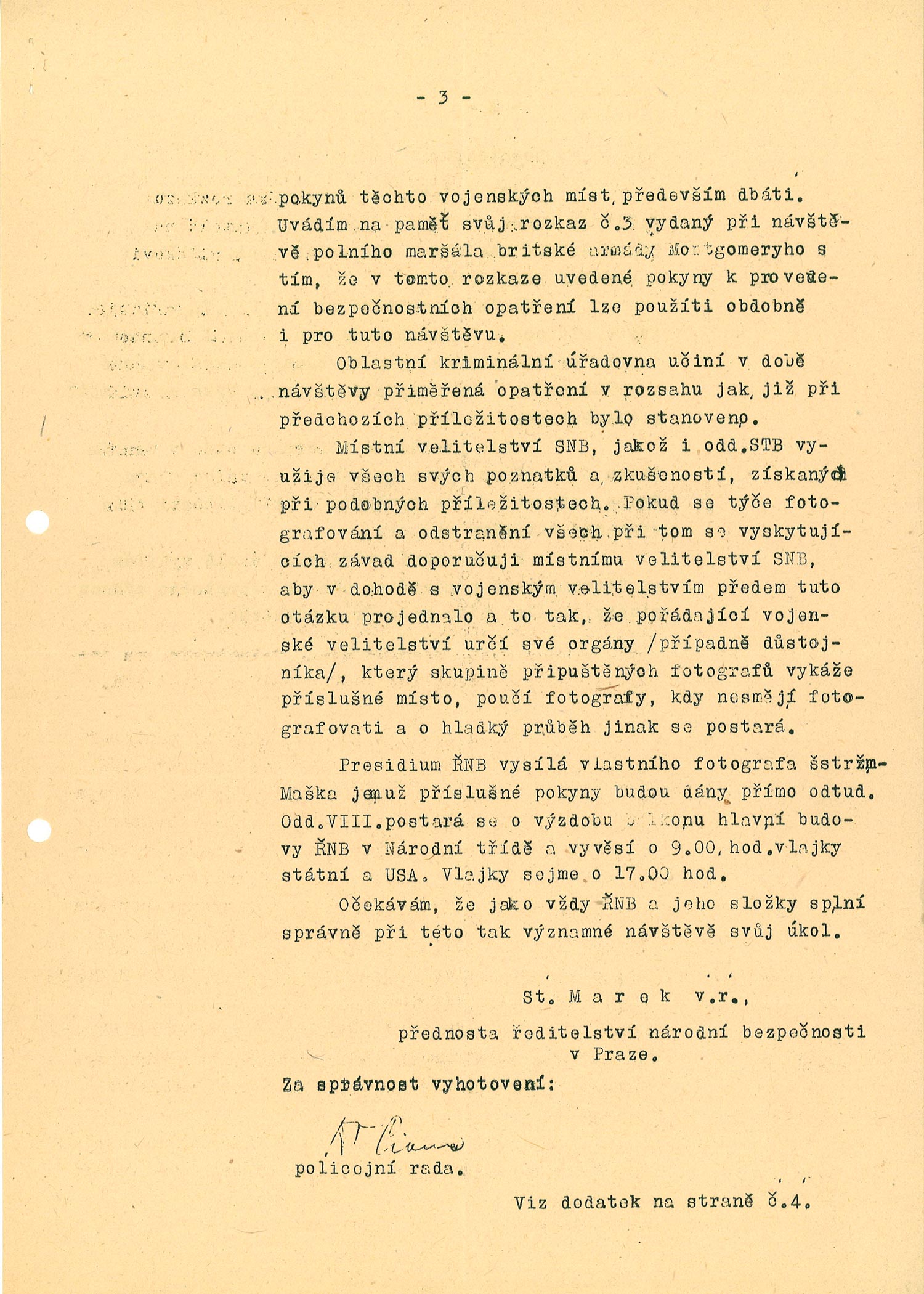 Rozkaz přednosty Ředitelství národní bezpečnosti v Praze S. Marka týkající se příjezdu a pobytu americké armádní delegace v Praze.