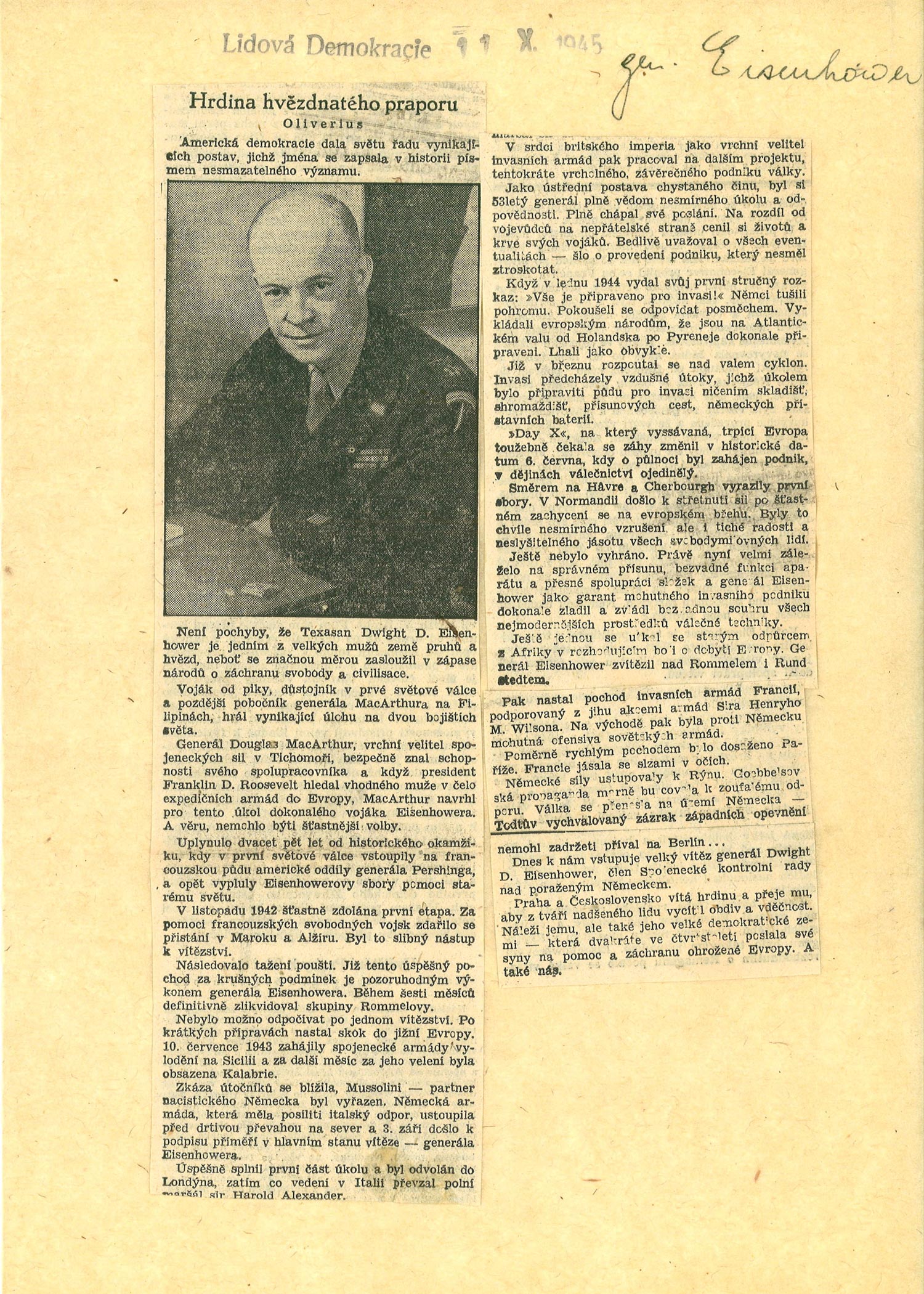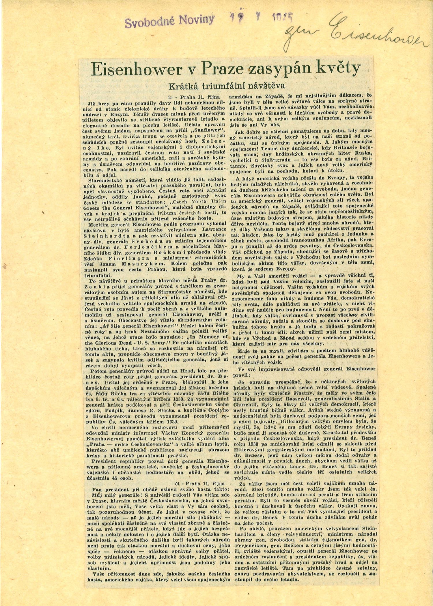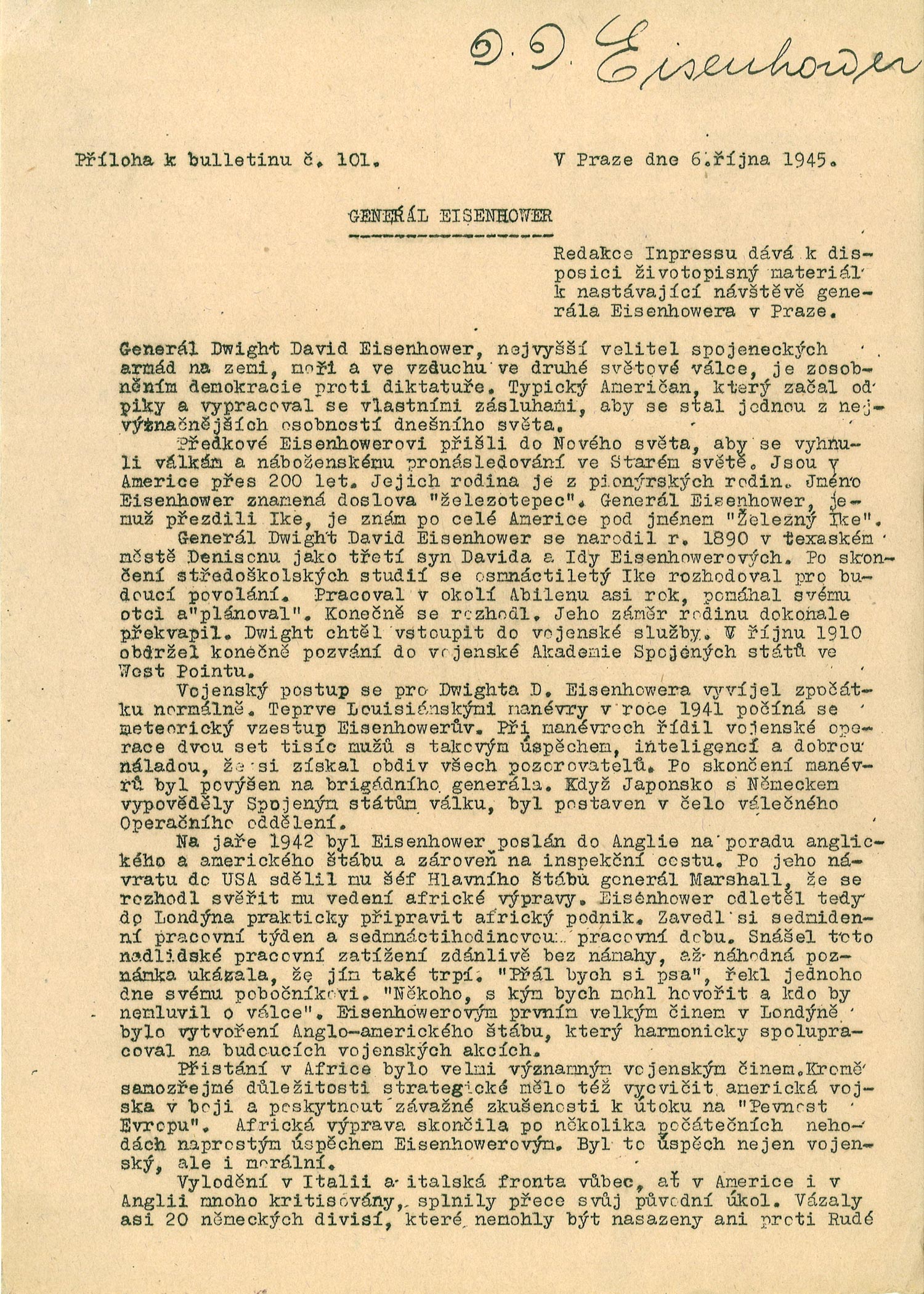 Životopis generála D. D. Eisenhowera publikovaný redakcí Inpressu k příležitosti jeho návštěvy Prahy.