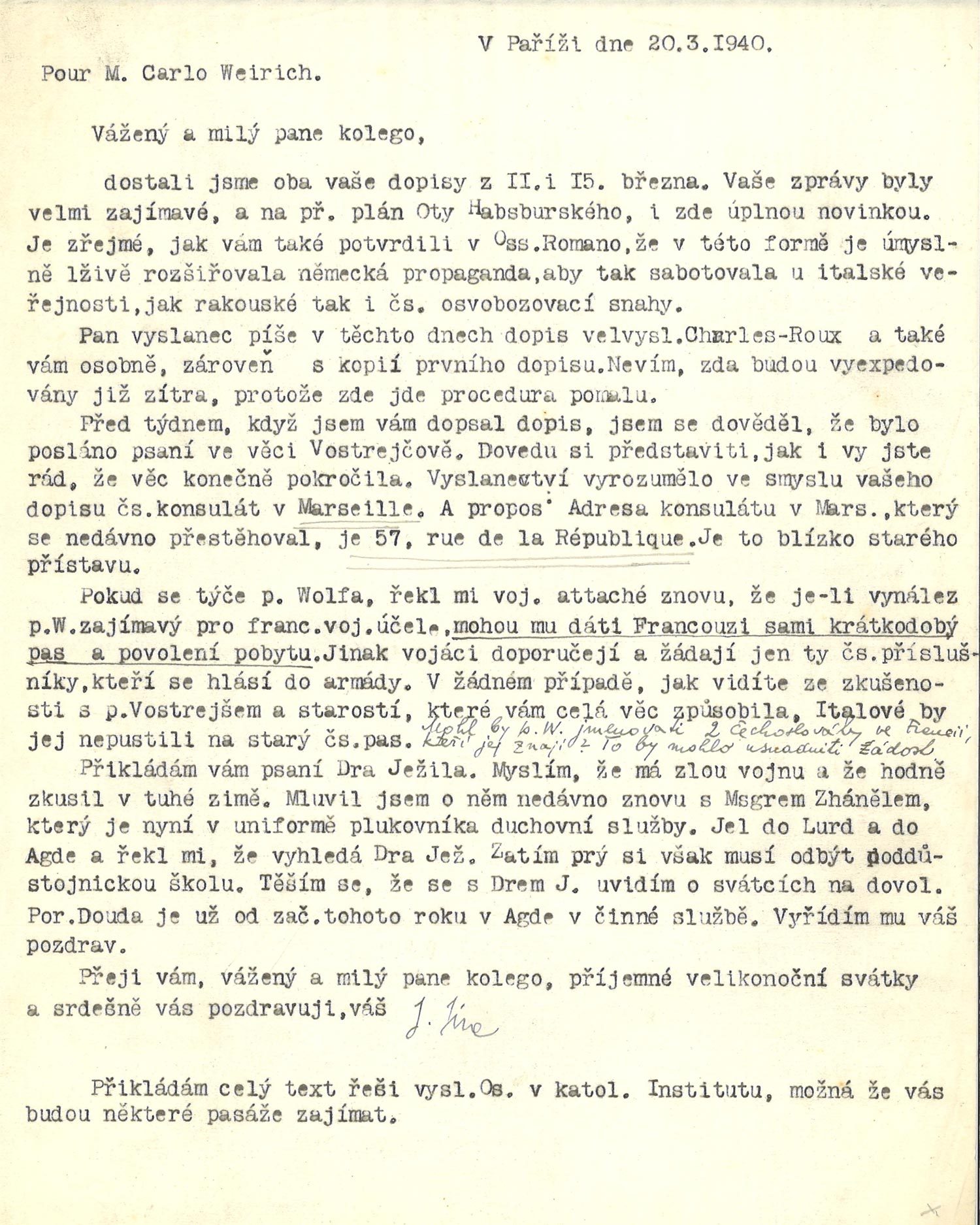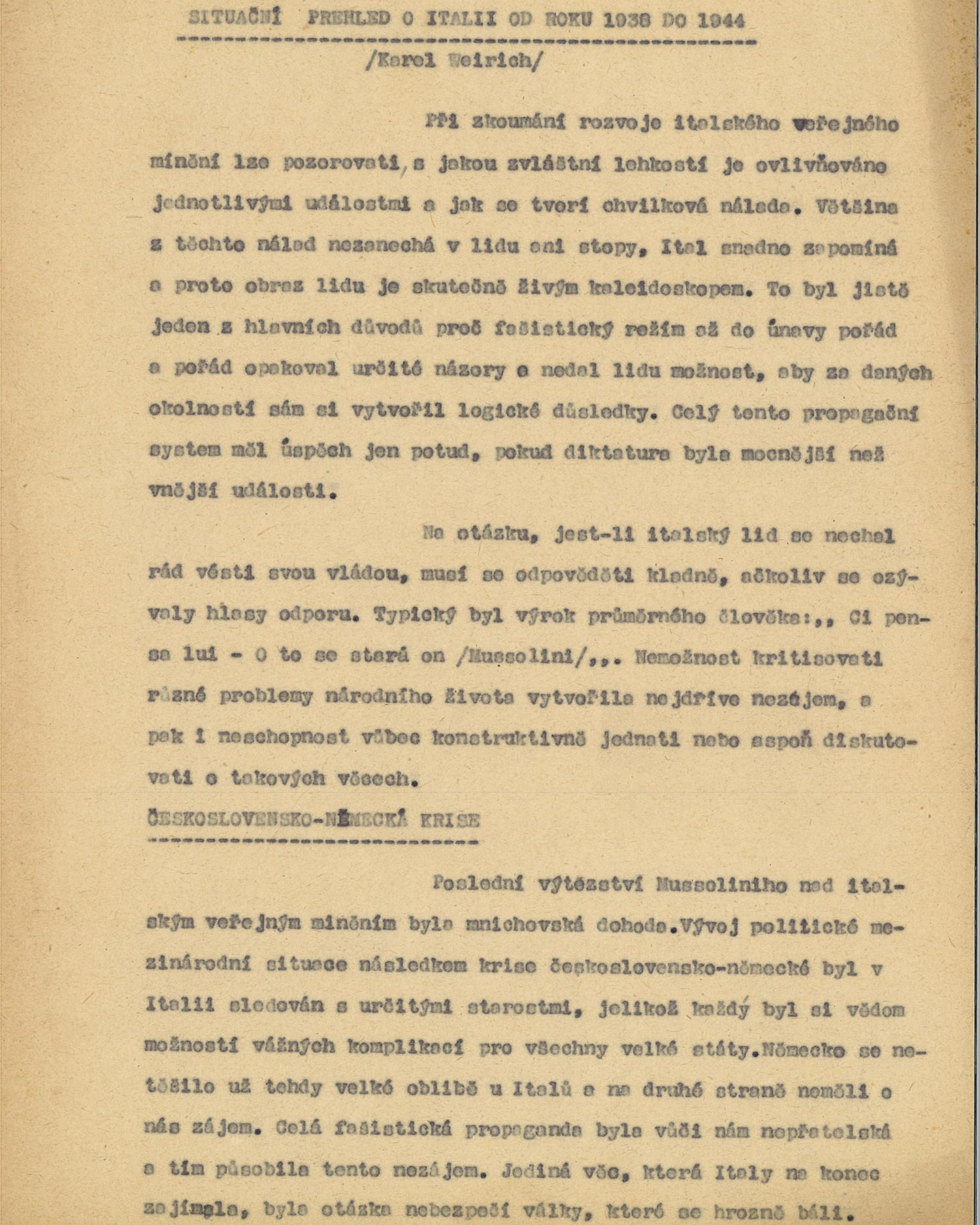 Součástí jsou také písemnosti týkající se Svatováclavského fondu v Římě (Opera di San Venceslao Roma), který Karel Weirich založil pro podporu československých antifašistů skrývajících se během druhé světové války v Itálii. Po odborném zpracování bude osobní archiv Karla Weiricha zpřístupněn badatelům.